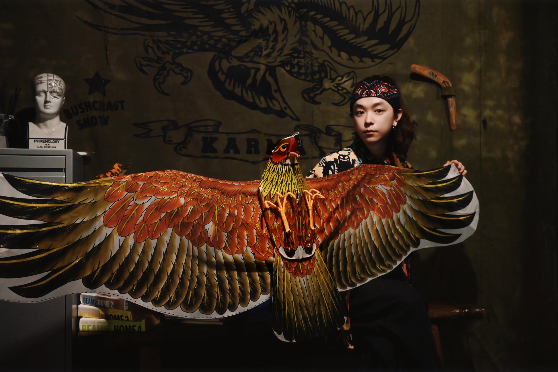 - Collections: Gold and silver eagle, owl. Handmade ancient kite